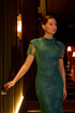 • Full-length emerald green lace maxi dress