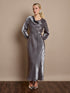 Turn heads this season with the Karlie Silver Maxi Dress — a statement piece that blends modern glamour with timeless elegance. Crafted from a lustrous viscose-blend fabric, it shimmers beautifully under the light, offering a fluid drape that flatters every movement. The softly structured silhouette features a cowl neckline, long gathered sleeves with pleated cuffs, and a self-tie waist belt that defines the figure effortlessly.